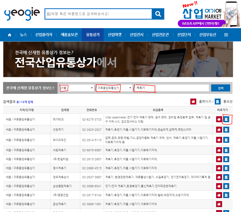 이상 산업포털 여기에(yeogie.com)에서 제공중인 유통상가 찾기 메뉴를 소개해 드렸습니다.